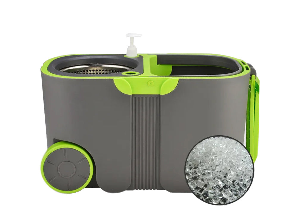 Spandens to-spindelsystem gør det let at skylle og centrifugere moppehovedet, så du altid har en ren moppe klar til brug.