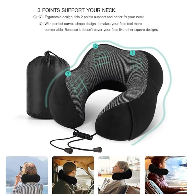 🛌 Memory Foam Pude – Formet til Din Komfort: Vores rejsepude er designet med hukommelsesskum, der reagerer på tryk og former sig efter din krops konturer. Dette sikrer ikke kun en uovertruffen komfort, men forhindrer også dannelsen af tryksår og forbedrer blodcirkulationen i kroppen. Efter brug vender puden tilbage til sin oprindelige form, klar til næste gang du har brug for den.