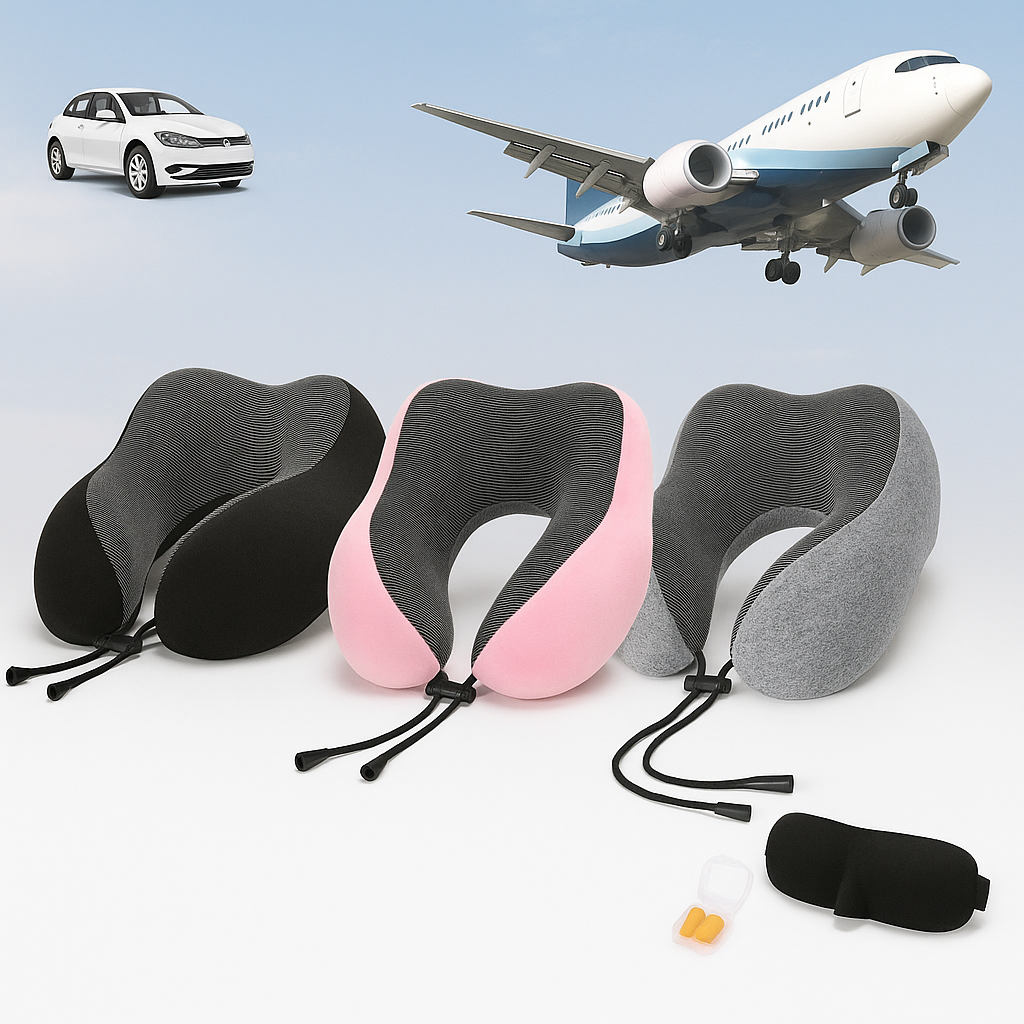 Gør dine rejser til en drøm med dette komplette Rejsepudesæt! Sættet inkluderer en hukommelsesskumpude, øjenmaske og ørepropper – alt hvad du behøver for at slappe af og nyde din rejse i fulde drag.