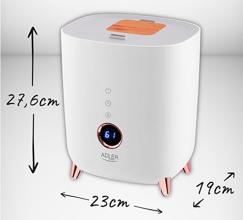 ⏲️ Timer og Sikkerhed Adler luftfugteren kommer med en timer-funktion, der automatisk slukker enheden efter 1, 2, 4 eller 6 timer, hvilket gør den ideel til natbrug eller tidsbestemte intervaller. Den er også udstyret med en vandmangelsensor, som automatisk slukker enheden, hvis vandtanken er tom, hvilket sikrer sikker og problemfri brug.