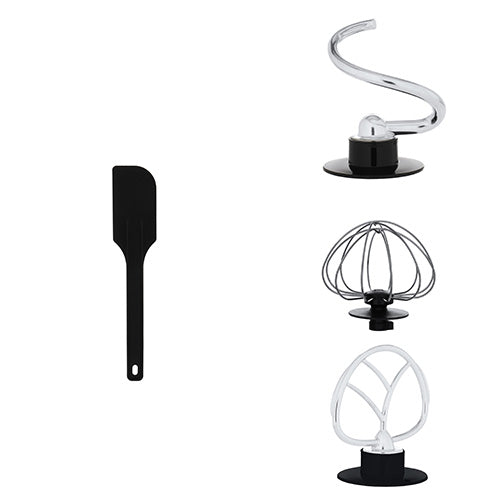 3 tilbehør: dejkrog, røre spatel og piskeris