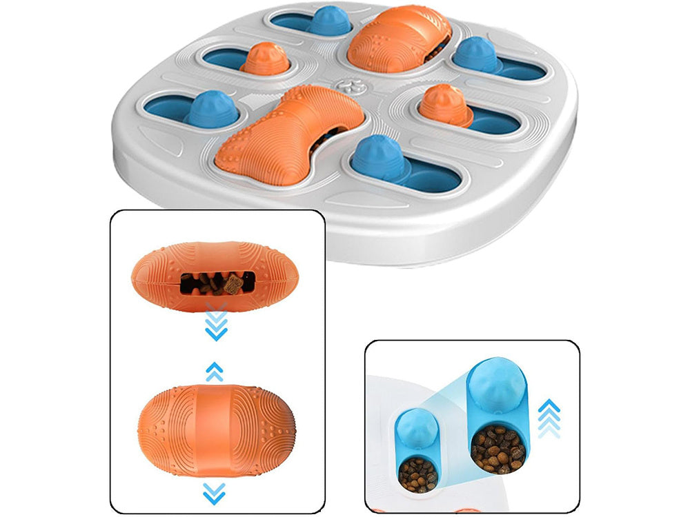 Dit kæledyr vil nyde at løse de indbyggede gåder for at nå de skjulte godbidder, hvilket stimulerer hans kognitive færdigheder og logiske tænkning. Dette interaktive legetøj er fremragende til at holde din hunds eller kats hjerne engageret og underholdt.