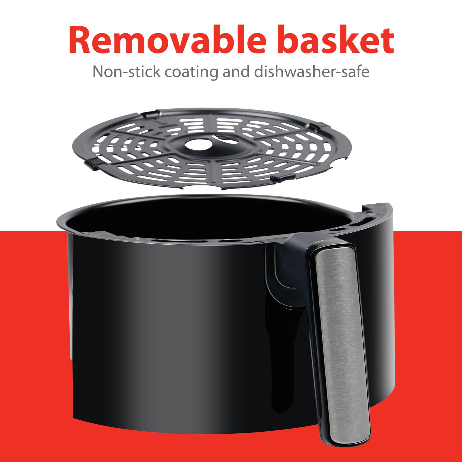 🧼 Opvaske maskinevenlig Inder bakke Efter madlavning er rengøringen nem som en leg. Inderbakken i varmluftsfriteusen er opvaskemaskinevenlig, hvilket sparer dig værdifuld tid ved oprydning.