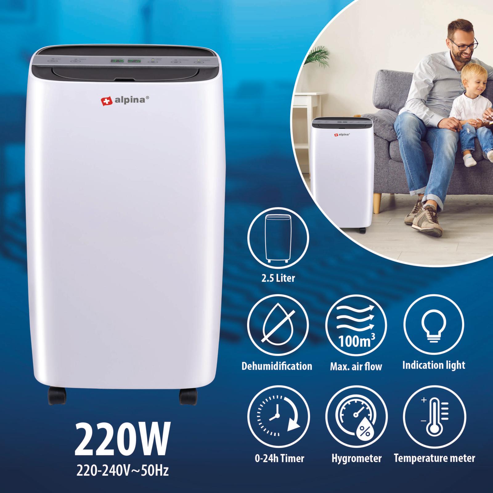Alpina kraftigt Luftaffugter og Luftrenser 10L Per Dag