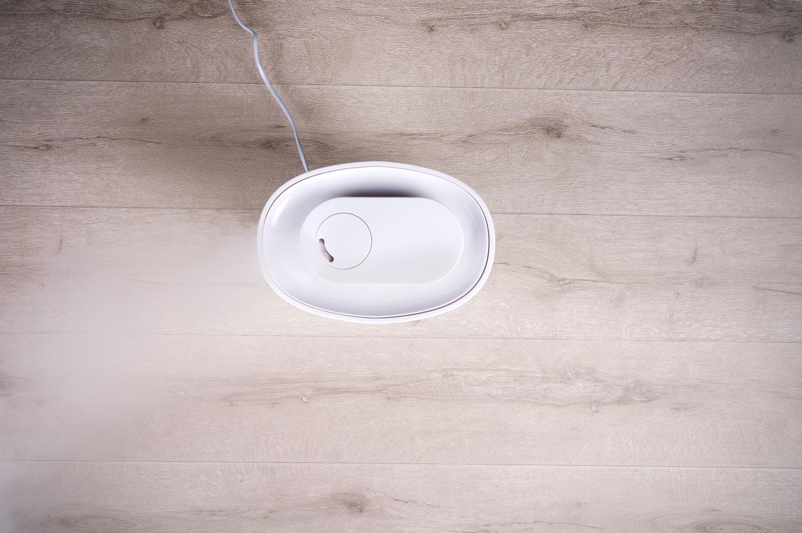 Denne ultrasoniskes luftfugter producerer en synlig, fin tåge ved hjælp af vibrationer under vandet. Du kan vælge mellem lav, middel eller høj forstøvning, alt efter dit behov. Med et vandreservoir på 4 liter kan den køre op til 12 timer. Hvis vandstanden bliver for lav, stopper enheden automatisk for at beskytte motoren.