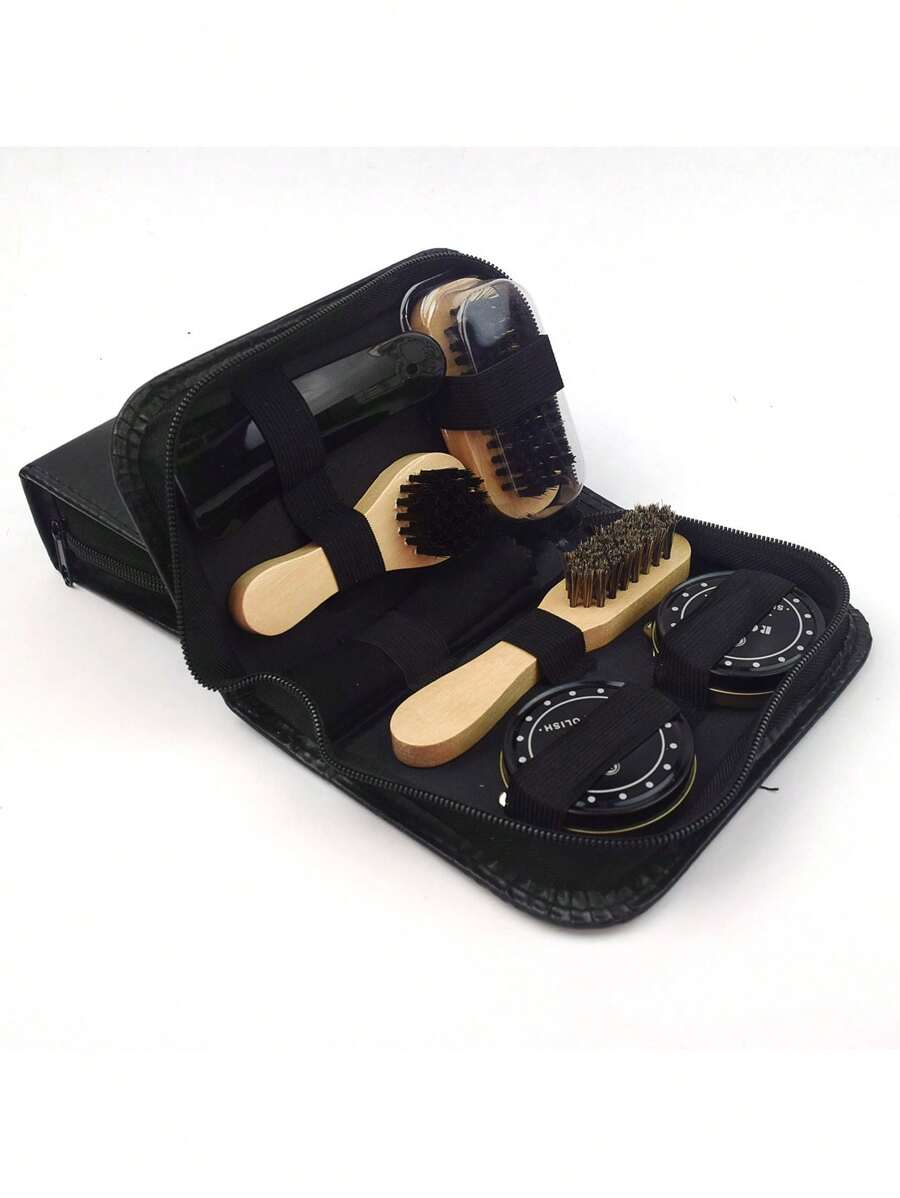 Vores "Alt-i-Én Skopleje Kit i Læderetui" er den ultimative løsning til skopleje, der giver alt, hvad du behøver for at holde dine sko skinnende og i god stand. Det er en uundværlig accessory for enhver skoentusiast.