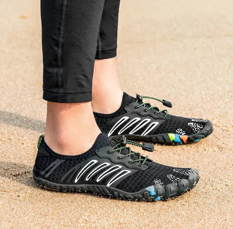 Men ikke i år! For her får du et par bevægelige, åndbare og vandafvisende badesko, der er lette at have med i tasken.