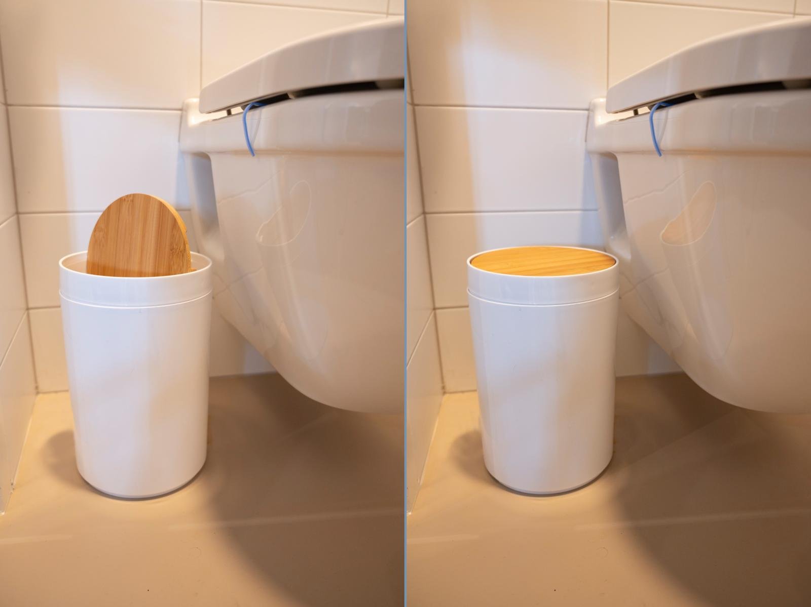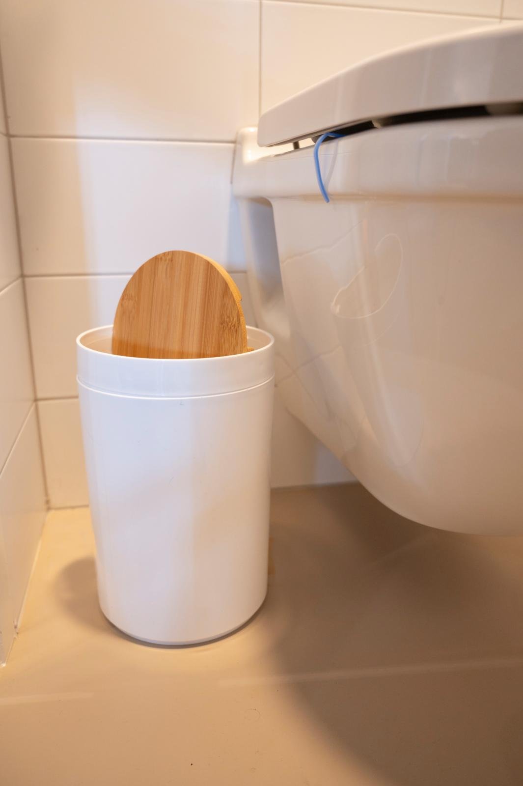 • Affaldsspand: Med vippelåg og bambuskant – ca. 27 x 18 cm