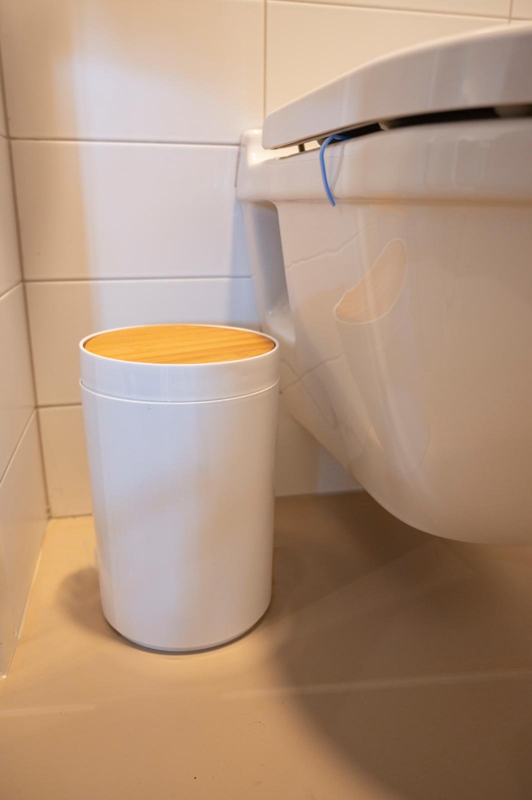Bambus giver sættet et varmt og roligt udtryk, og fungerer som en flot kontrast til det hvide plast. Det tilføjer en følelse af wellness og ro i dit badeværelse.