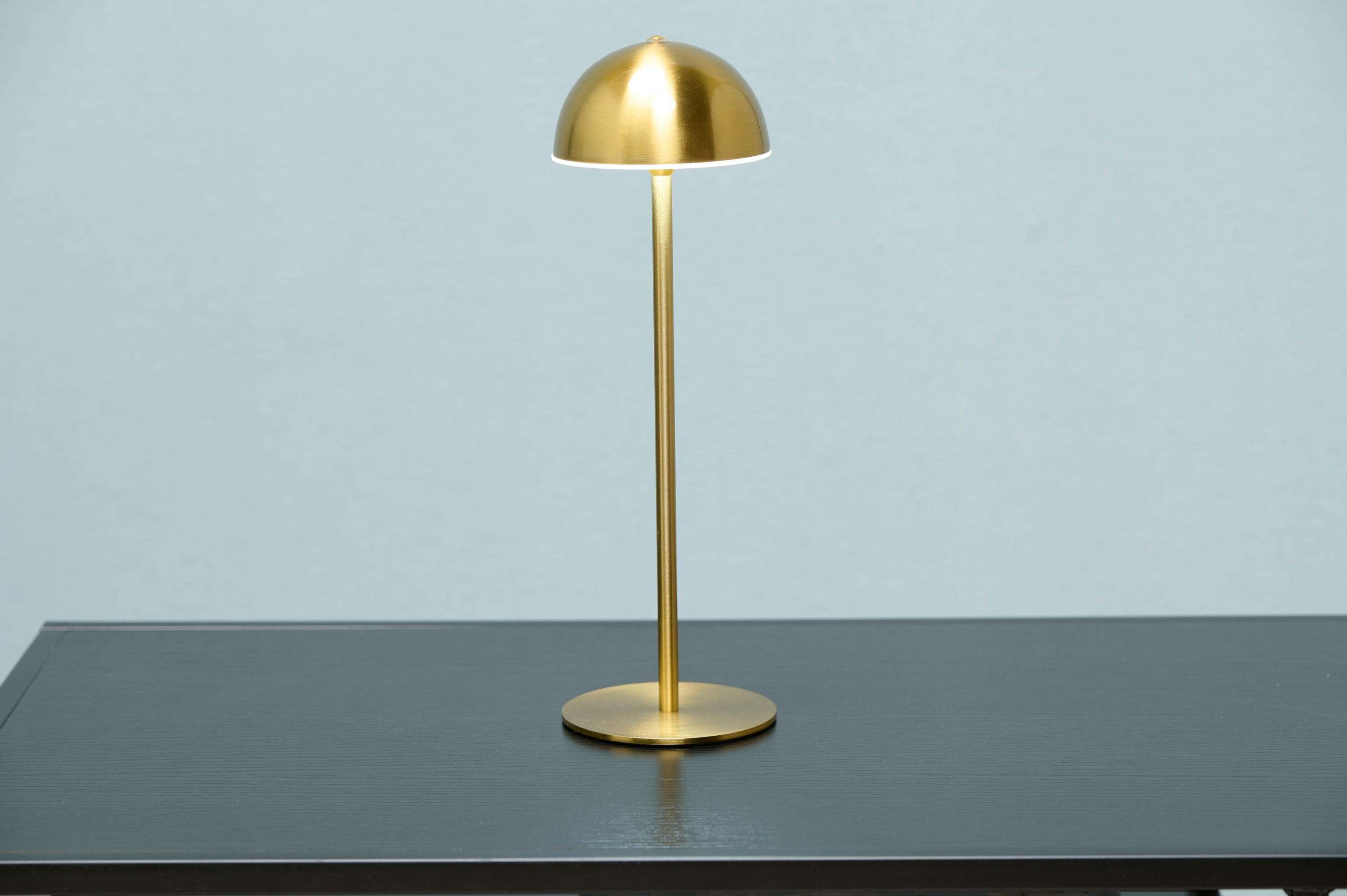 Tilføj et eksklusivt og moderne udtryk til dit hjem med denne bordlampe i guld med rundt hoved. Lampens elegante guldfinish og stilrene design gør den perfekt som skrivebordslampe eller natbordslampe. Den kombinerer funktionel belysning med et dekorativt look, der passer ind i både moderne og klassiske indretninger.