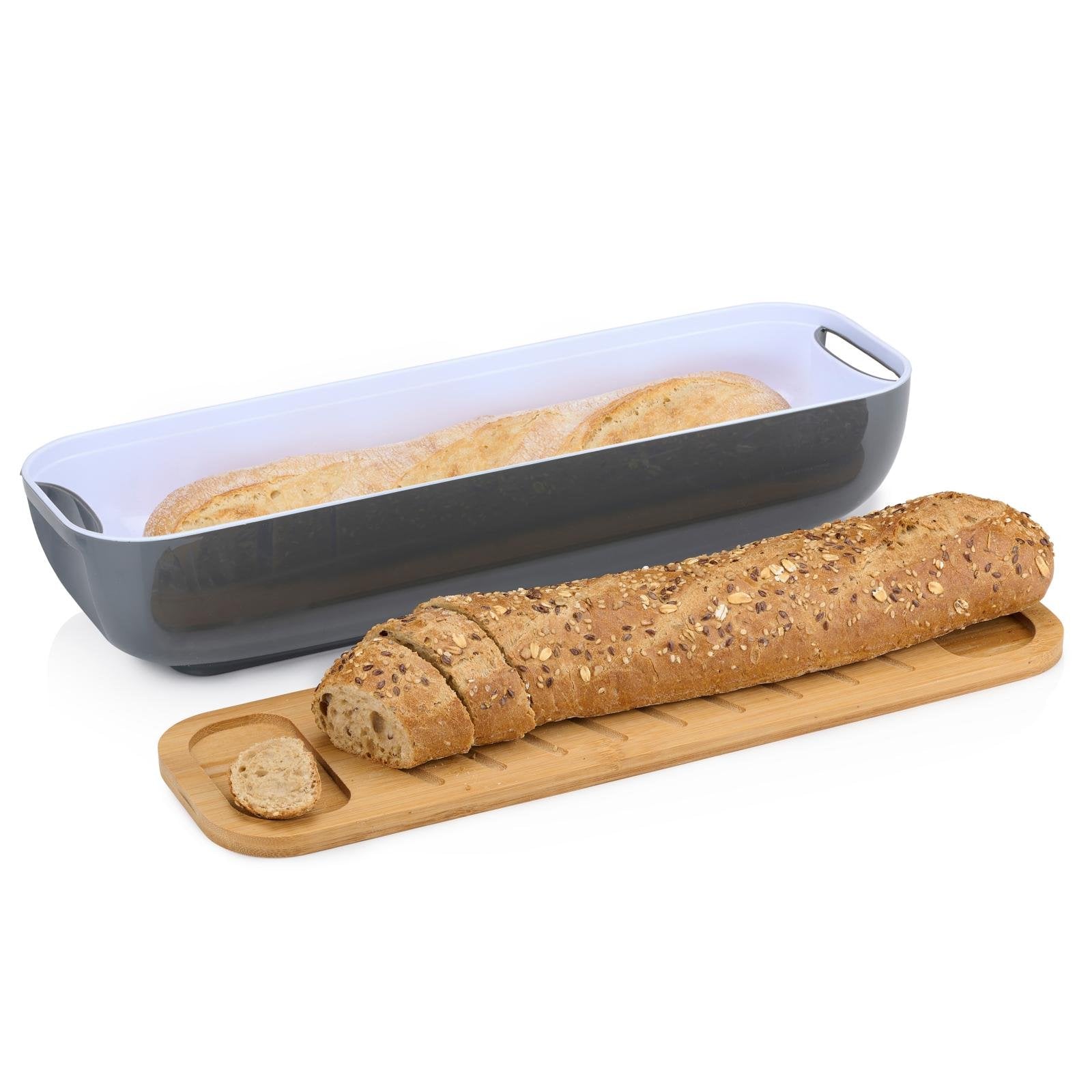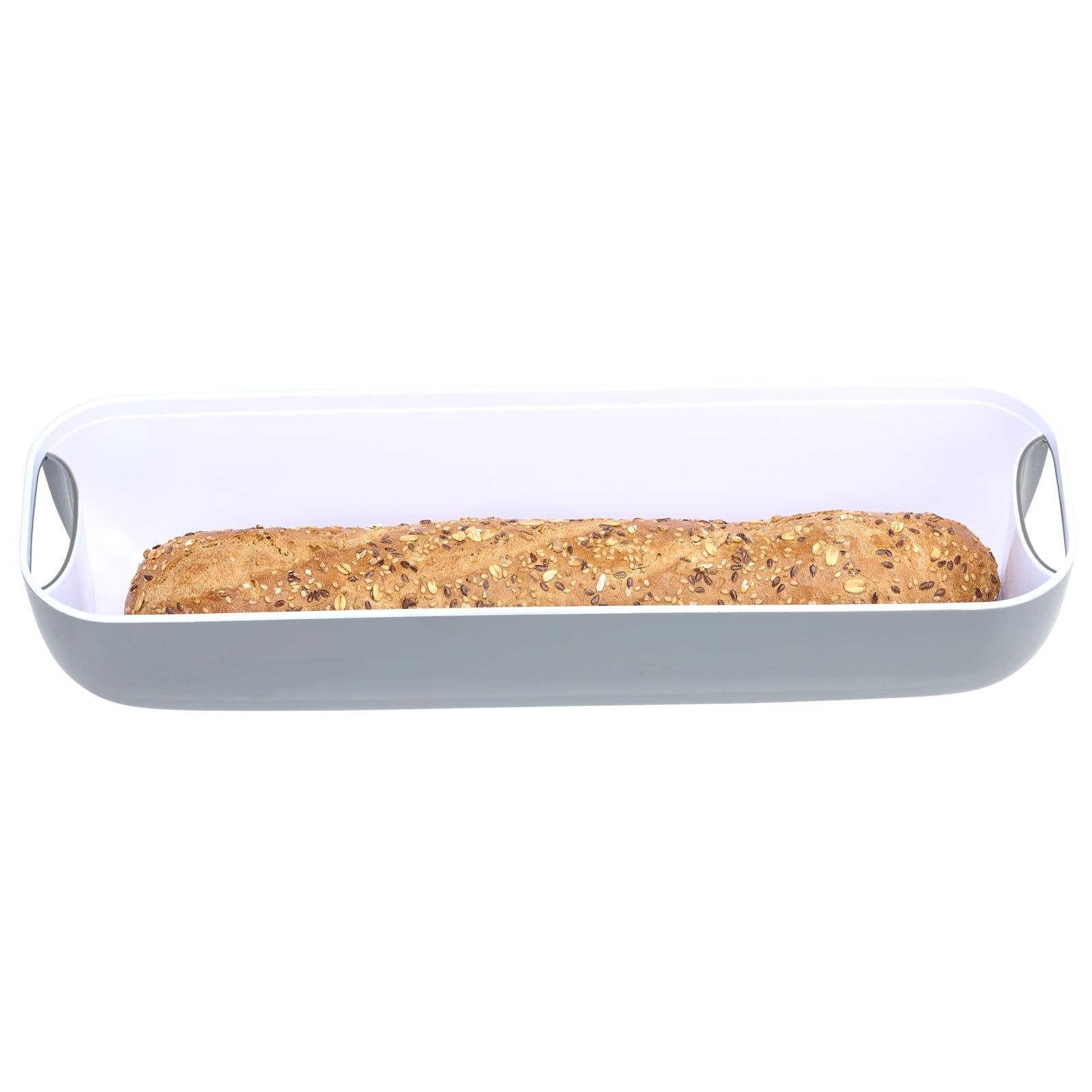 🥖 Perfekt til Baguetter og Længere Brød Med sine indvendige mål og aflange form er kassen ideel til opbevaring af baguetter, sandwichbrød og andre længere brødtyper. Den grå yderside og hvide inderside giver et rent og stilfuldt look.