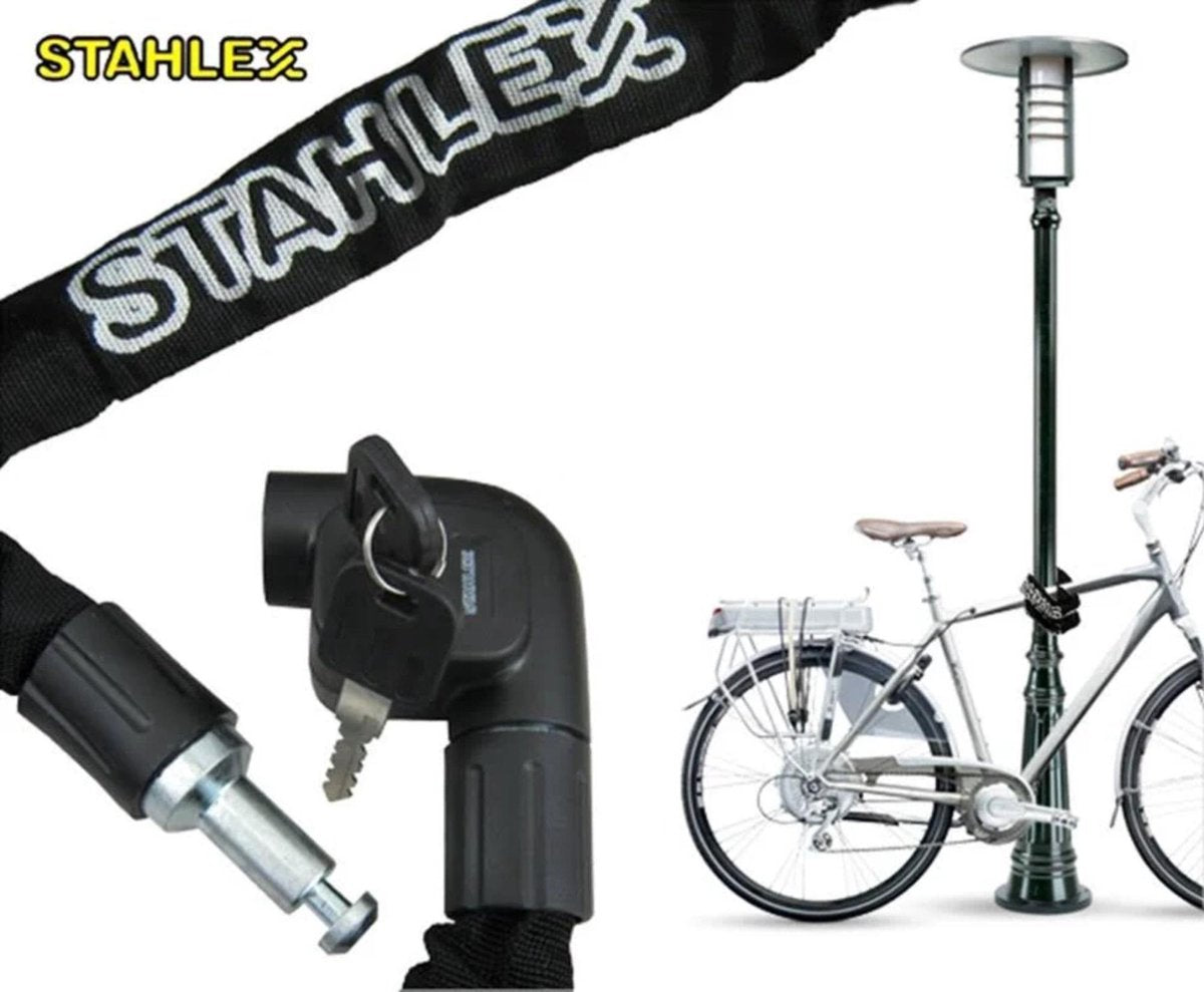 Stahlex Kædelås med fast hoved 120cm i sort, er en praktisk og stærk cykellås, der er ideel til at beskytte din cykel mod tyveri.
