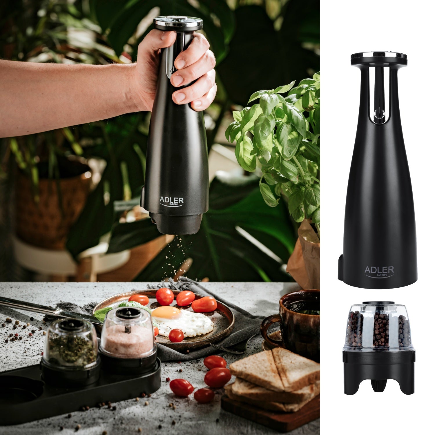 - Kapacitet: 150 ml pr. kværn – mindre genopfyldning