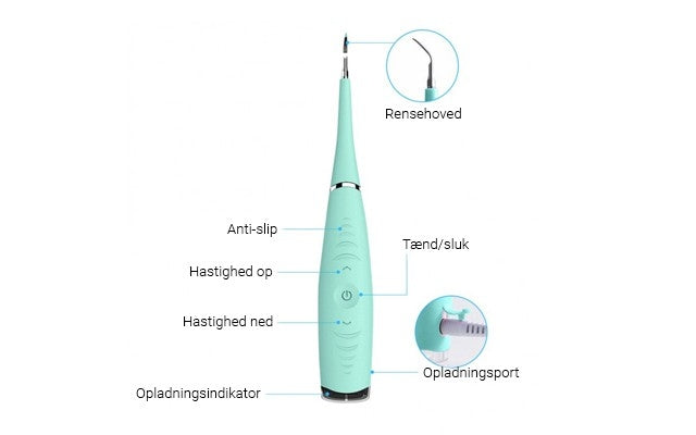 Hold dine tænder sunde og rene med denne elektriske tandrenser, som ved hjælp af ultrasoniske vibrationer kan løsne plak, tandsten, bakterier og snavs fra dine tænder.