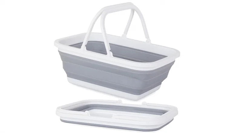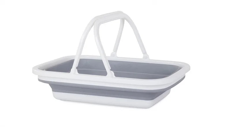 Når kurven er foldet sammen, fylder den ikke ret meget, og den kan derfor let gemmes af vejen, når den ikke bruges. Feks også i bilen eller campingvognen.