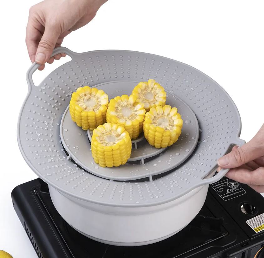 Grydelåget er lavet af premium silikone af højeste kvalitet, der ikke kun sikrer enestående holdbarhed, men også en nem rengøring. Dets fleksible materiale gør det let at placere og fjerne, og det kan nemt foldes eller rulles for at opbevares pladsbesparende i dine køkkenskuffer.