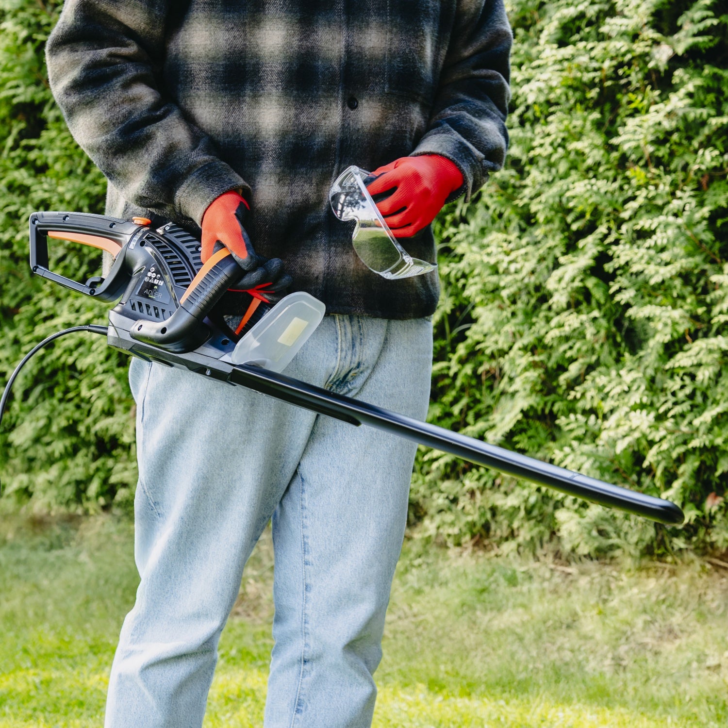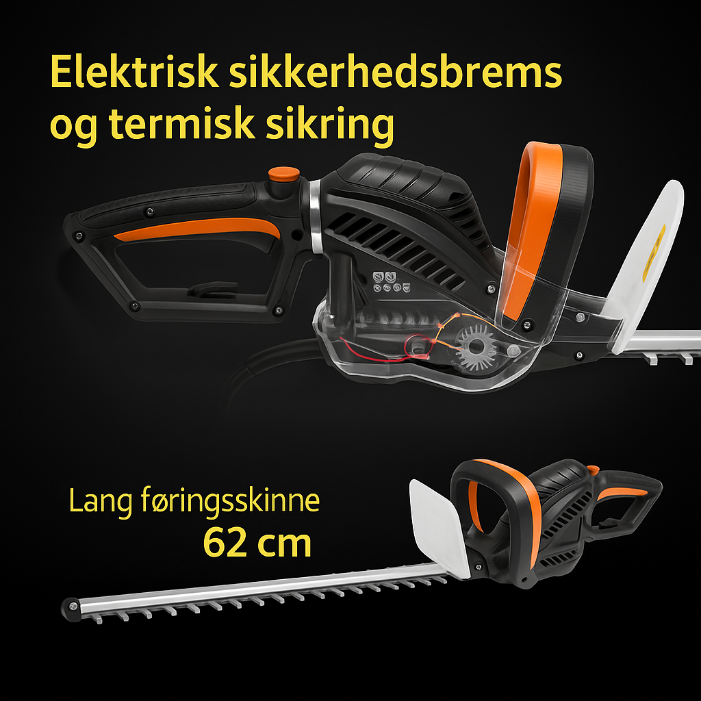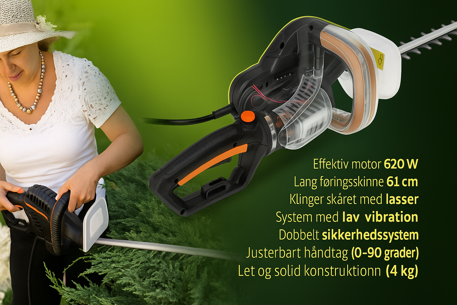 🌿 Effektiv og Kraftfuld Med en stærk 620W motor kan hækkeklipperen nemt klare grene og kviste op til 17 mm i tykkelse. Perfekt til alt fra beskæring af buske til formklipning af prydplanter.