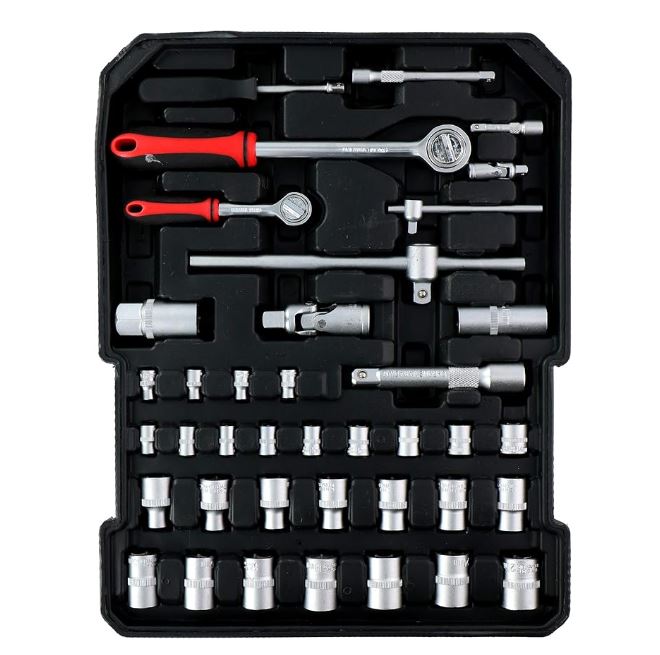Værktøjet er fremstillet i stærkt CR-V stål (krom-vanadium), der giver ekstra styrke og beskytter mod rust og slitage, så du kan bruge sættet i mange år frem.