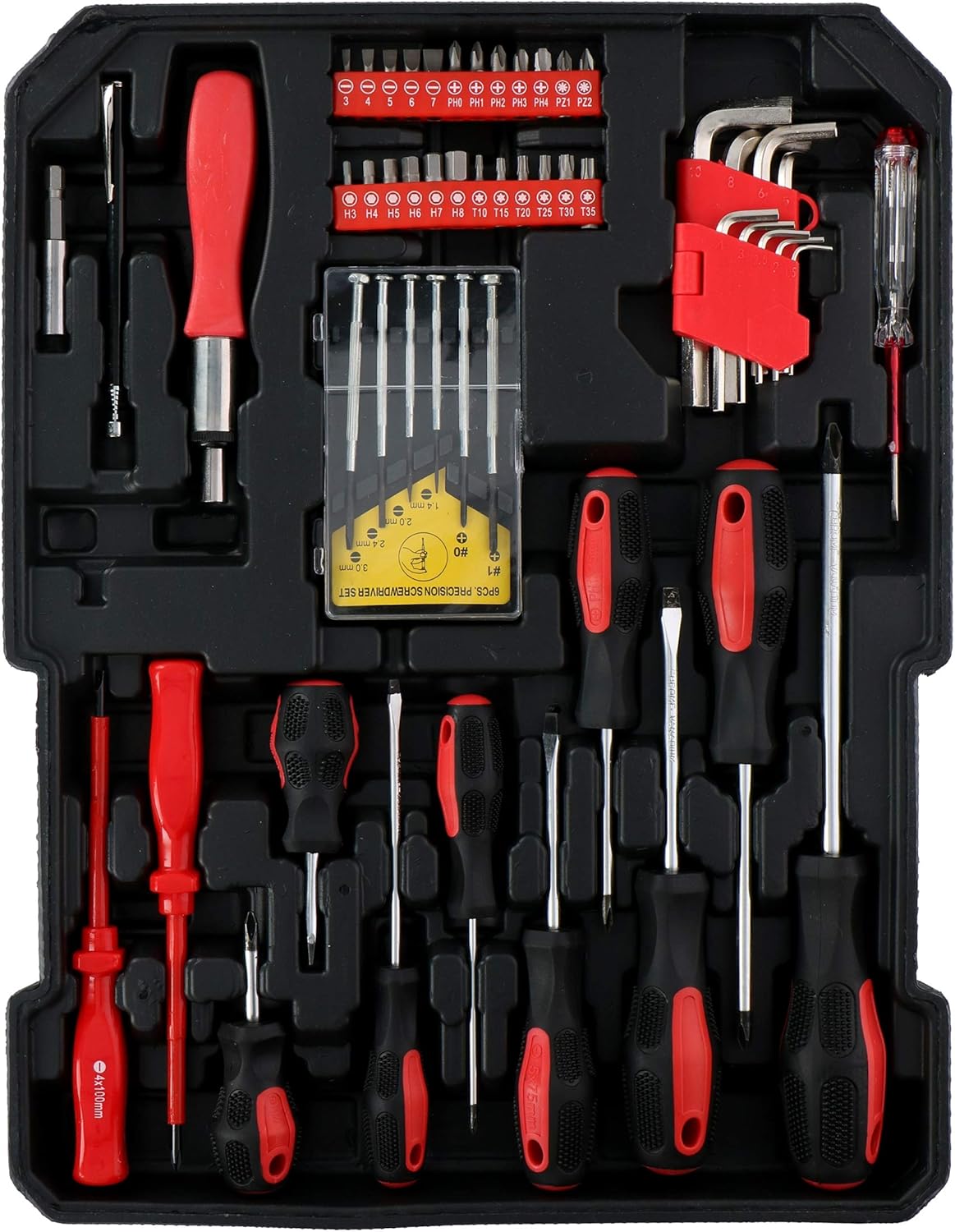 11 x skruetrækker (-) 4 x 100 mm, 5 x 75 mm, 6 x 38 mm, 6 x 100 mm (+) 3 x 75 mm, 5 x 75 mm, 6 x 38 mm, 6 x 100 mm, 8 x 150 mm Isoleret (+) 4 x 100 mm, (-) 4 x 100 mm