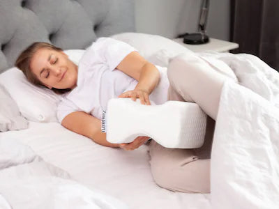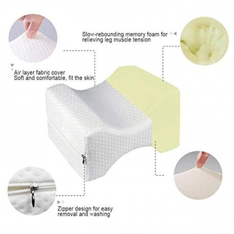 Få en bedre nattesøvn med vores "Ortopædiske Knæpude med Memoryskum". Denne pude er designet til at placeres mellem knæene for at give støtte og aflaste kroppen under søvn. Den former sig efter din krop og giver støtte til knæ og ryg.
