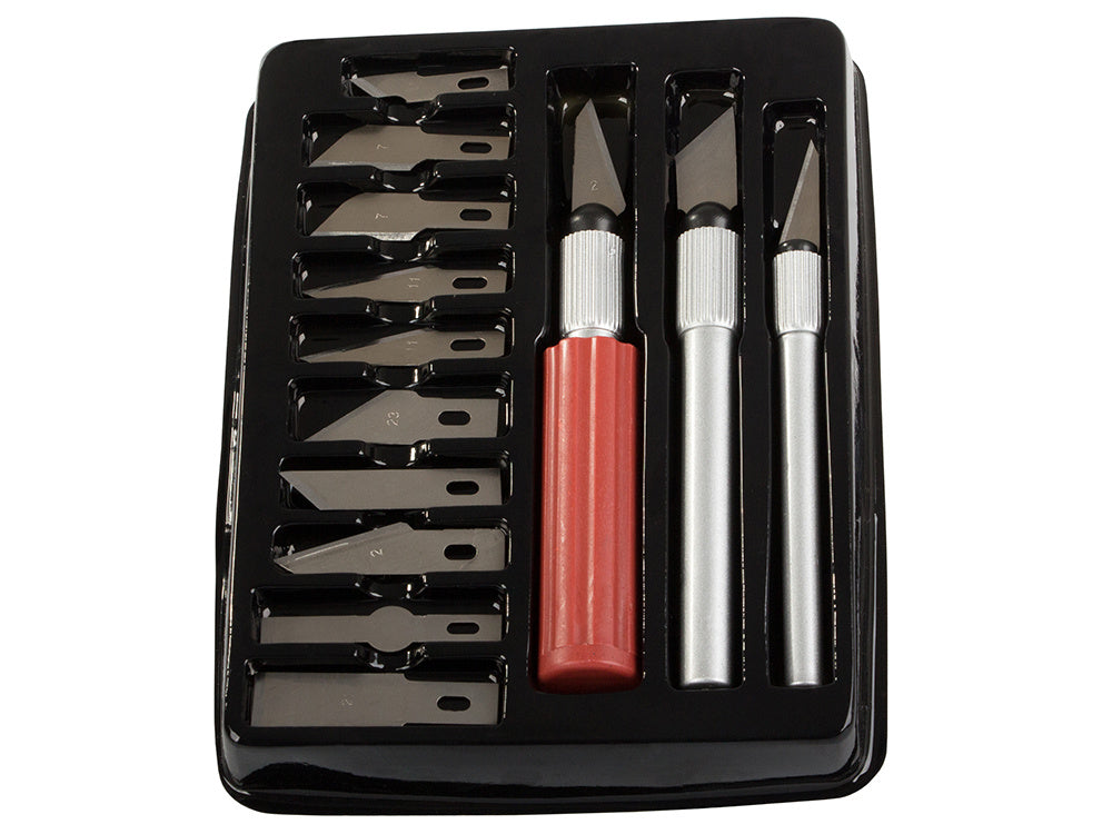 🎨 Alsidigt og Præcist Sættet inkluderer tre let grebbare håndtag, hvorpå en af de 13 udskiftelige klinger kan monteres. Med et bredt udvalg af klingetyper og størrelser kan du nemt finde det rette værktøj til enhver opgave.