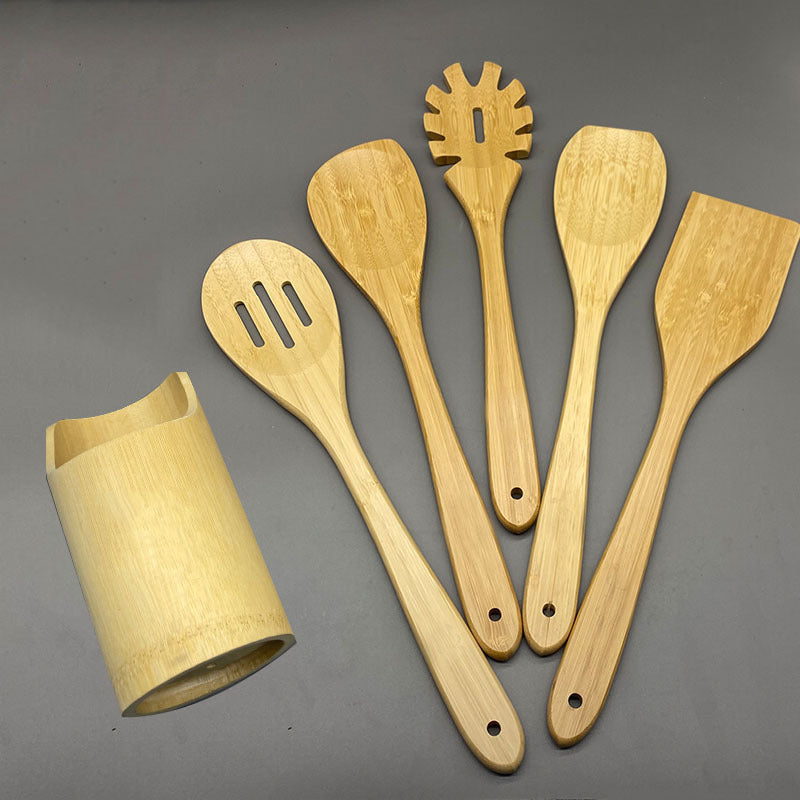 Lad os introducere dig til vores femdelte køkkensæt lavet af 100% ægte bambus. Hvert stykke i sættet er omhyggeligt udformet for at imødekomme dine behov i køkkenet og samtidig respektere og bevare vores miljø. Med vores køkken sæt i bambus får du ikke kun kvalitetsredskaber, men også et æstetisk udtryk, der vil forbedre enhver madlavning oplevelse.