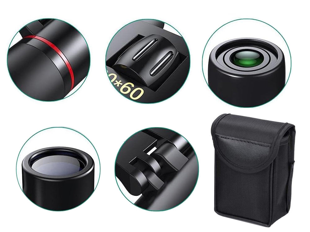 Denne "Kompakte 30x60 Kikkert" er det ideelle valg til udendørsentusiaster, der søger en let, bærbar og kraftfuld kikkert til både dag- og natobservationer.