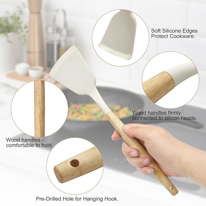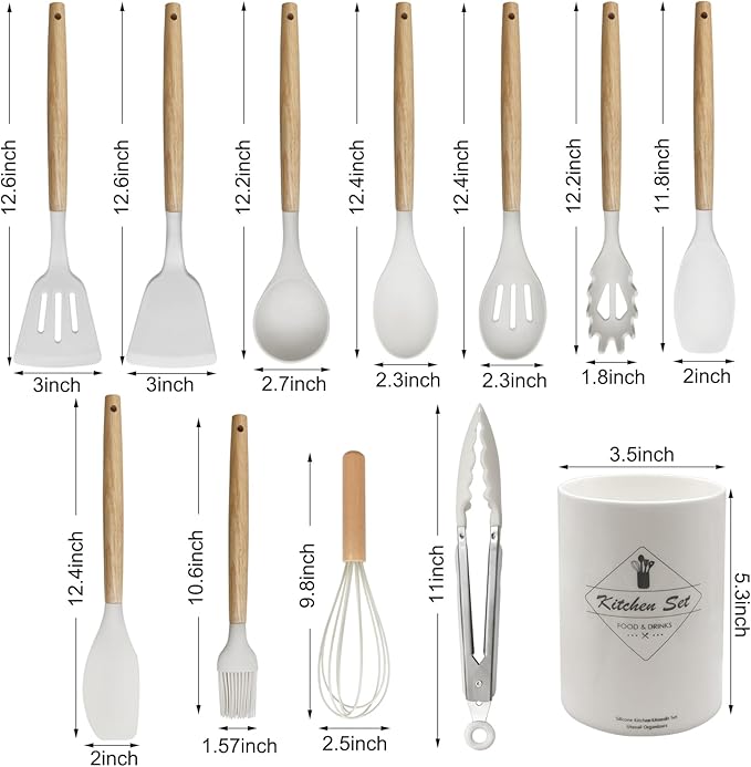 🍳 Holdbart og Sikkert Materiale Redskaberne er lavet af premium non-stick silikone, der er holdbart og BPA-frit, hvilket sikrer sikker kontakt med mad. Silikonen er skånsom mod dine pander og potter og nem at rengøre.