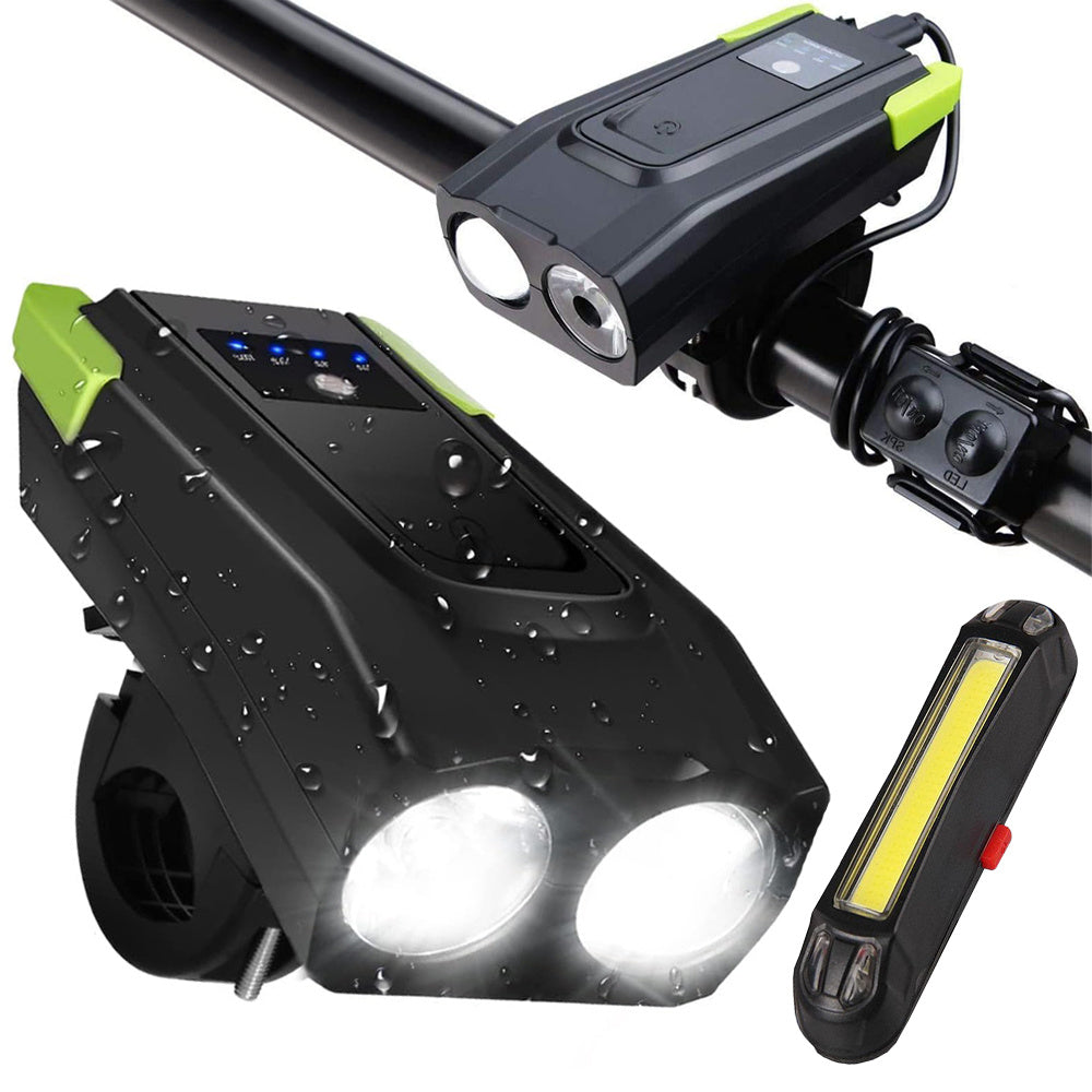 Cykellygte sæt Kraftfuld , Forlygte + Baglygte - Indbygget Horn