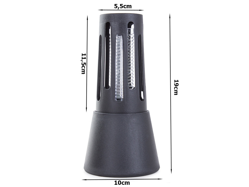 Med LED-lyskilde tiltrækker lampen insekterne indeni, hvor de forhindres i at undslippe. Beholderen i bunden kan nemt skrues af og tømmes for insekter.