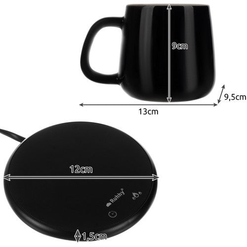 Elsker du varm kaffe eller te, men når sjældent at drikke den, før den bliver kold? Så er dette komplette krusvarmer-sæt den perfekte løsning! Det elegante sæt indeholder en keramisk kop med låg og ske samt en digital varmeplade, der holder din drik lun i op til 9 timer. En ideel gave til kaffe- eller te elskeren – praktisk, smuk og funktionel.