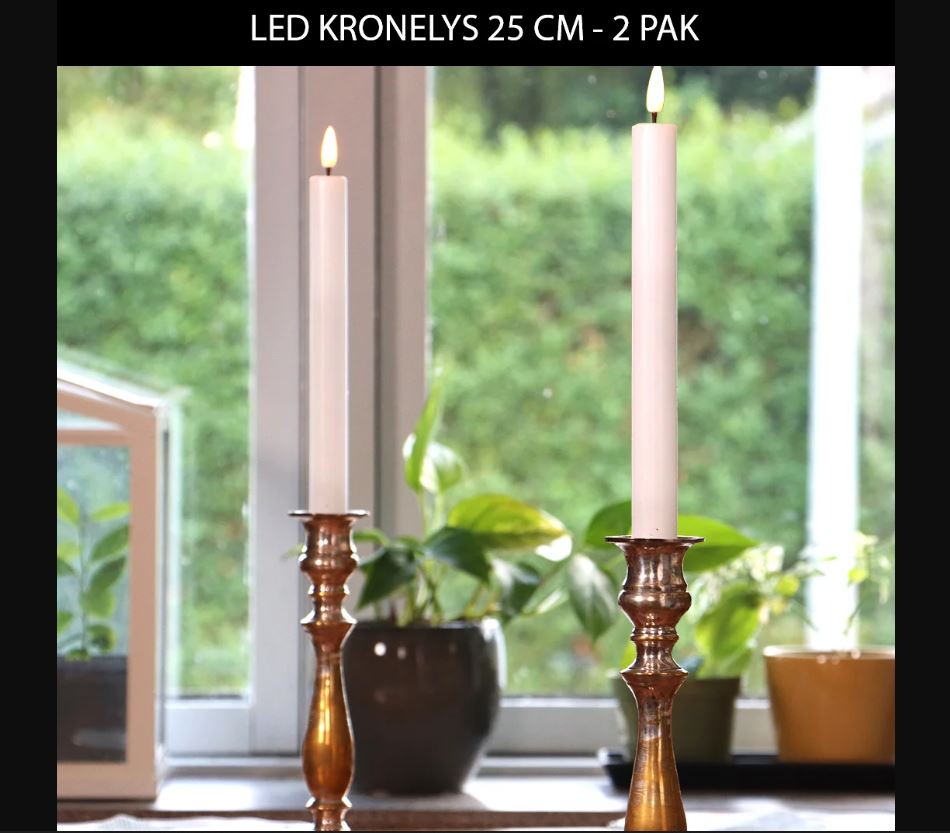 Flotte realistiske LED-lys med flakkende flamme. Lysene er lavet af hvid voks, så de ligner rigtige lys. Lysene bruger 2 stk. AAA batteri pr. lys (batterier er ekskl.)