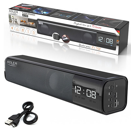 Oplev alsidigheden i denne Multifunktionel Bluetooth Soundbar med Ur og Alarm – en elegant og praktisk løsning til dig, der ønsker både god lyd og smarte funktioner i ét og samme produkt. Denne kompakte enhed fungerer både som trådløs højttaler og som vækkeur, hvilket gør den perfekt til soveværelset, stuen eller kontoret.