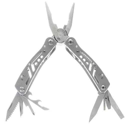Multitværktøjet indeholder alt fra kniv, sav, skruetrækker og dåseåbner til tænger og tråd skærer. Perfekt til overlevelse, friluftsliv, arbejde i haven, camping og småreparationer i hjemmet.