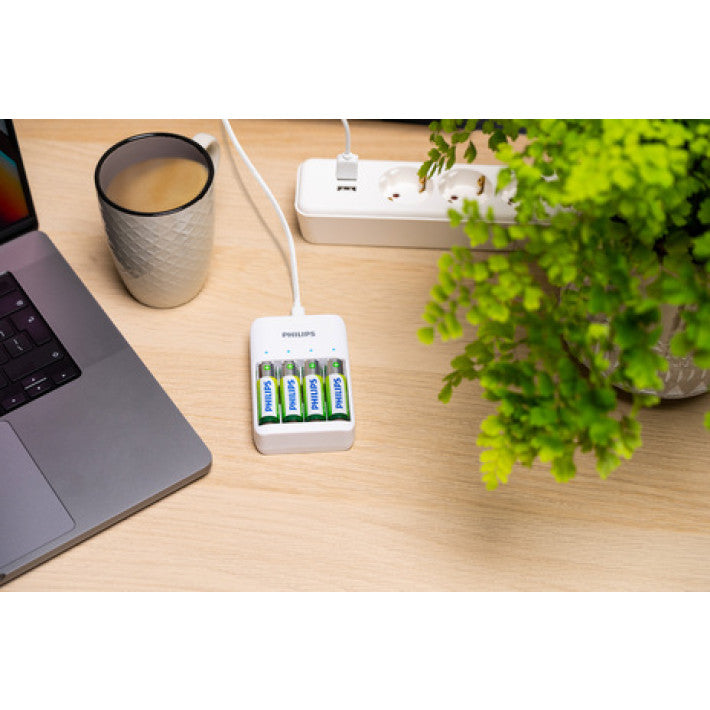 Batteriopladeren fra Philips er en praktisk enhed, der gør det nemt at oplade dine genopladelige batterier derhjemme eller på farten. Denne batterioplader leveres med fire genopladelig. . .