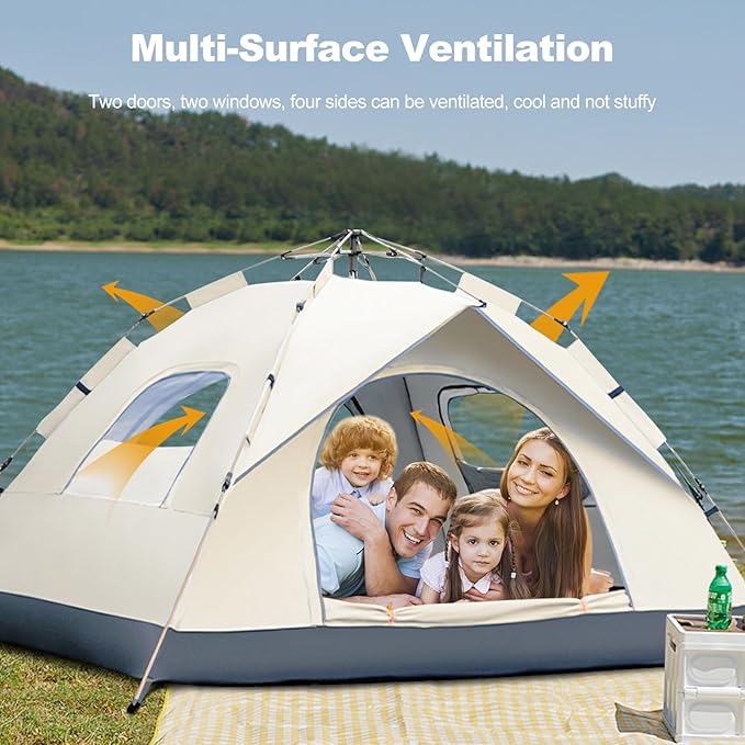 Pop-up Telt til 3-4 Personer – Med 2 Døre, Vinduer og Bæretaske
