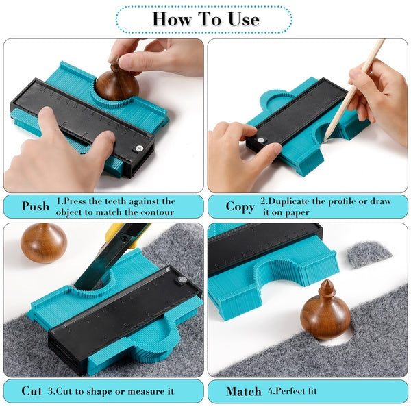 Konturmåleren kan bruges til laminat, metalbearbejdning, fliseskæringer, tæpper og meget mere. Profil-ven kan bruges til rør, runde rammer, kanaler, og den kan måle uregelmæssige genstande. Uanset hvad, så kan du bruge konturmåleren til ALT, hvor du skal måle eller lave markeringer.