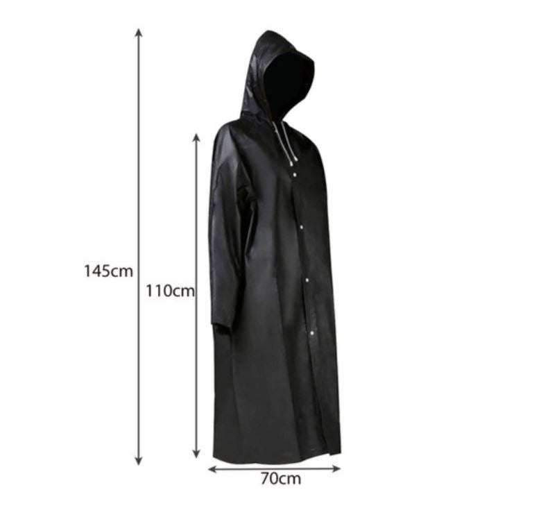 - SPECIFIKATIONER - farve: sort, materiale: EVA, længde uden hætte: 110 cm; overordnede mål: 145 x 70 cm;