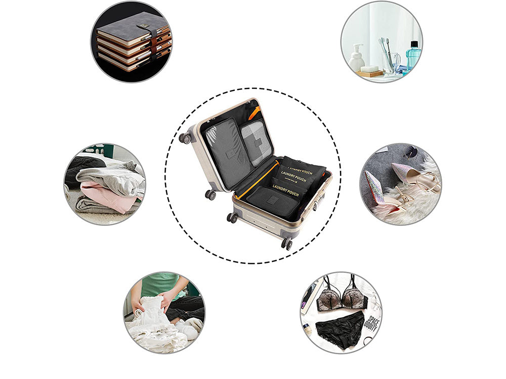 Dette sæt indeholder seks tasker i forskellige størrelser, så du kan adskille og organisere forskellige genstande effektivt. Den store variation af tasker gør det muligt at pakke systematisk og tilmed pakke til flere personer i en enkelt kuffert.