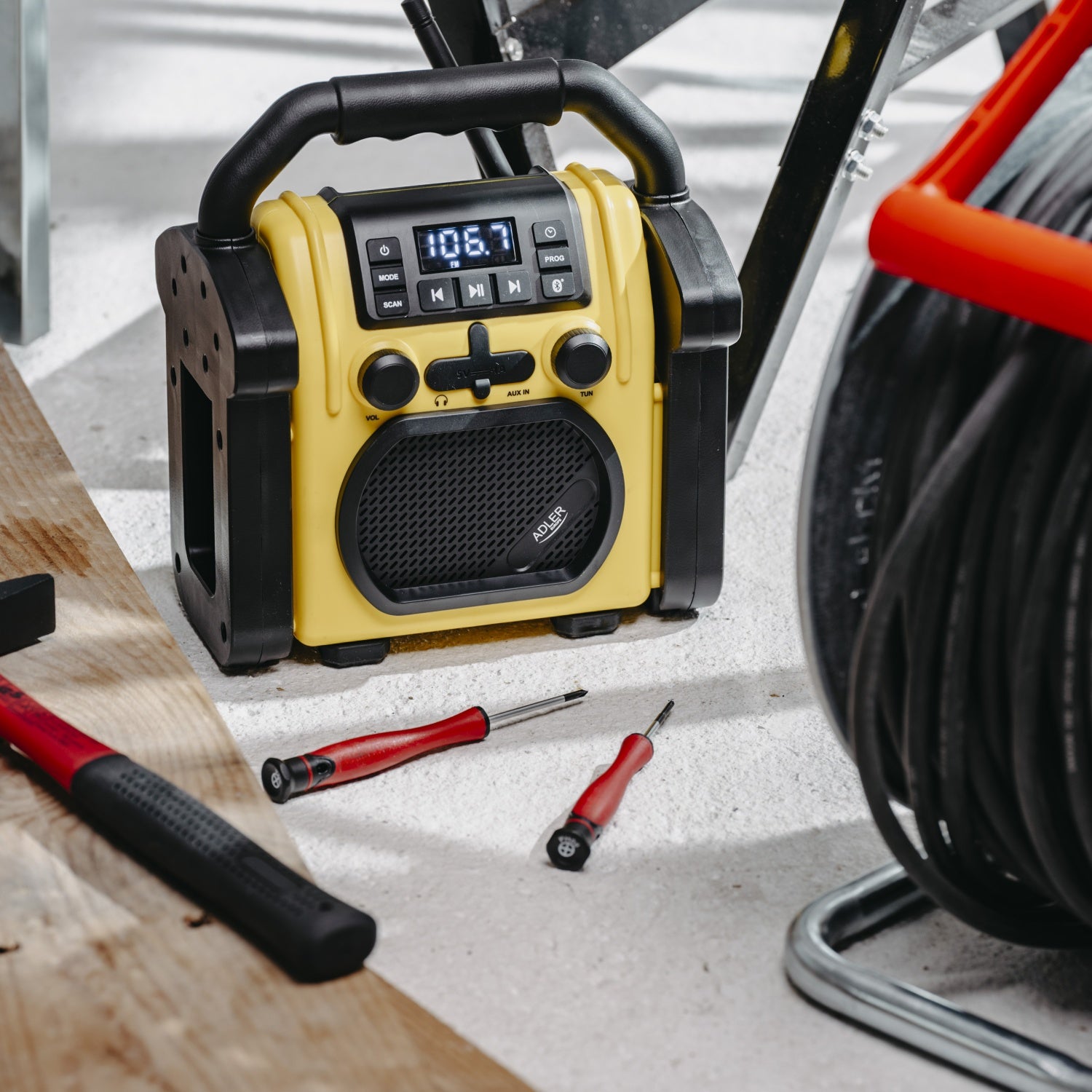Skab god stemning på byggepladsen eller under udendørsaktiviteter med denne "Robust Byggeradio med Bluetooth og Opladningsfunktion". Designet til at modstå krævende miljøer kombinerer denne radio holdbarhed med moderne funktioner, så du kan nyde din yndlingsmusik, uanset hvor du er.