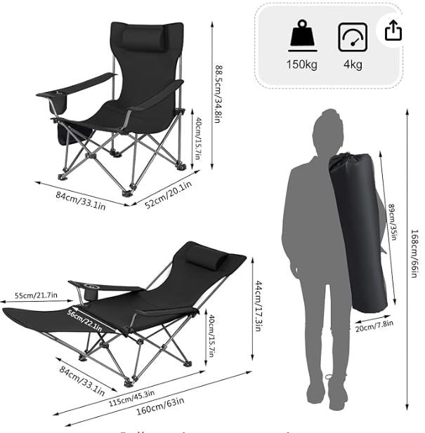 Med denne "Sammenklappelige Campingstol med Bæretaske" får du den ultimative kombination af komfort, funktionalitet og mobilitet – uanset hvor du befinder dig.