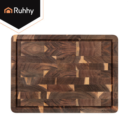 🌳 Robust og Holdbart Det 3 cm tykke bræt er lavet af massivt, tæt akacietræ, som er kendt for sin styrke og modstandsdygtighed over for fugt og ridser. Det tåler intensiv brug og beskytter samtidig dine knive mod slitage.