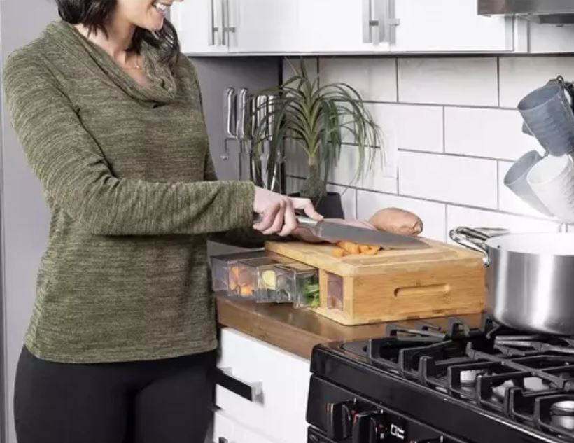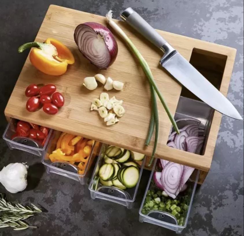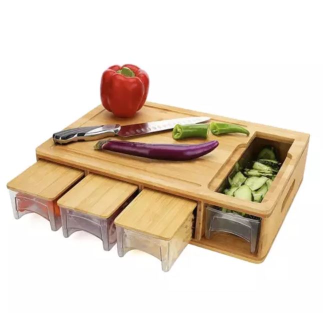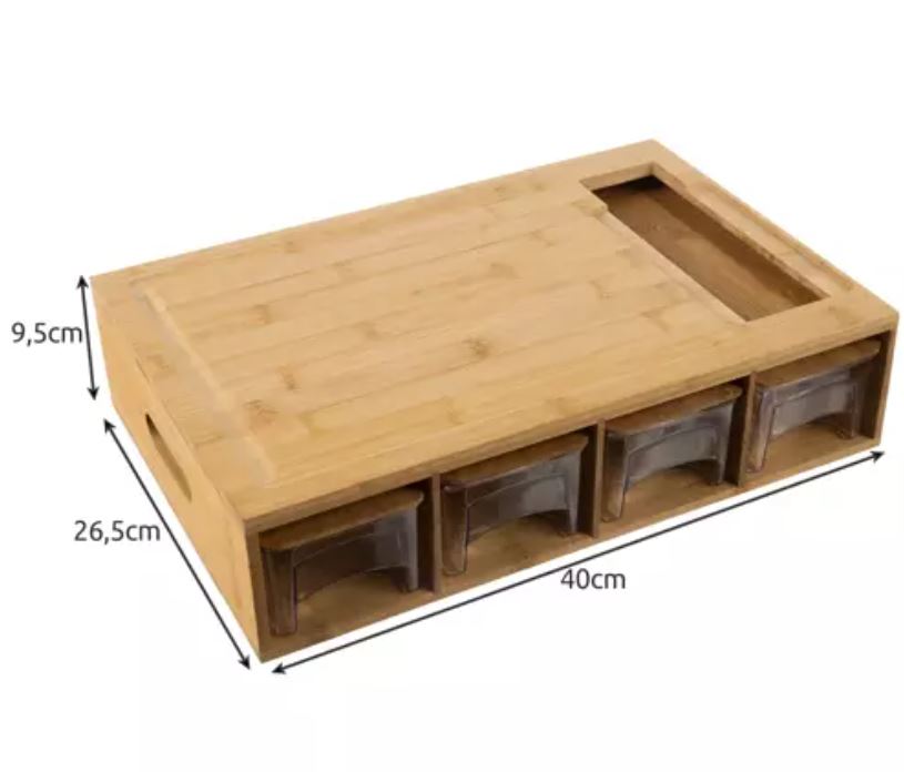 SKÆREBRÆT MED 4 BEHOLDERE OG 4 BAMBUGRADER
