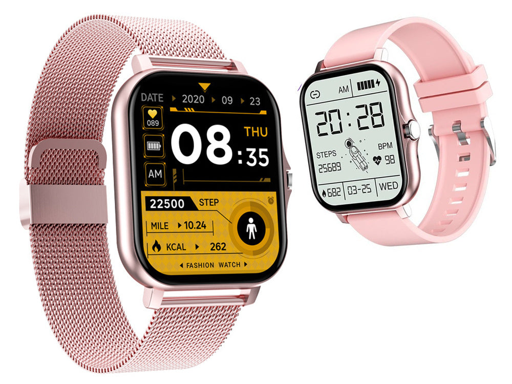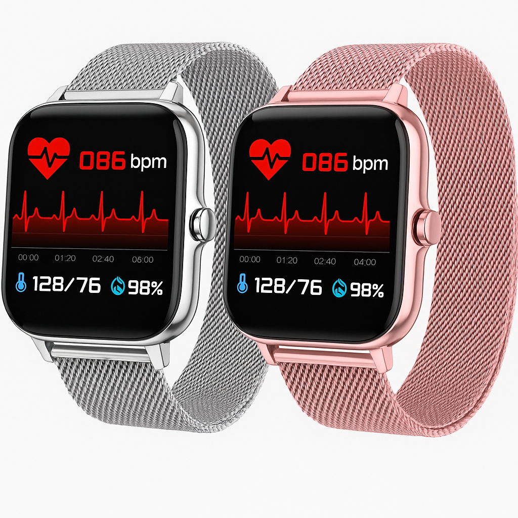 Oplev det perfekte mix af stil og funktionalitet med denne elegante "Smartwatch til Kvinder og Mænd" i en flot lyserød eller grå farve. Med Bluetooth-opkald, sundhedsovervågning og mange smarte funktioner er dette ur designet til både hverdag og træning – og det passer lige godt til både ham og hende.