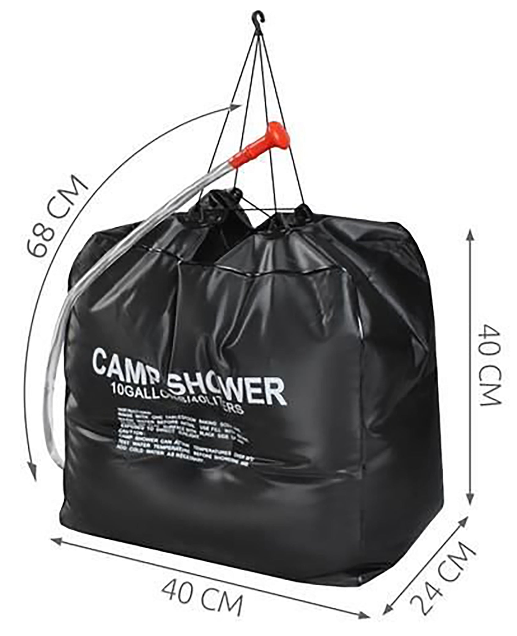 En ufyldt bruser er let og fylder lidt – den kan sagtens passe fx i en rygsæk. Bruseren kan hænges på et hvilket som helst fremspringende, stabilt element - f.eks. et håndtag, en stang, et rør eller endda en trægren (vær dog opmærksom på, at en fuldt fyldt vandbyge kan veje meget - vælg de rigtige hængesteder afhængig af mængden af vand du hælder i).+ tasken er lavet i plastik