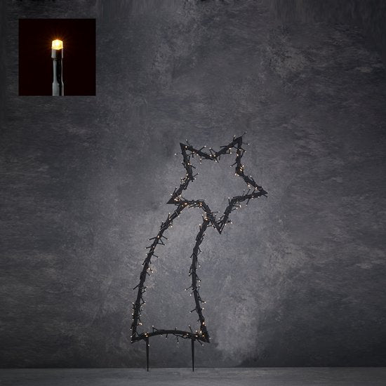 Skab hygge og stemning i din have med den smukke "Stjerneformet Havelampe". Denne dekorative havelampe er en del af Garden d'Light-serien, som kan udvides med op til 1500 LED-lys, perfekt til at give din have en julemakeover! Lampen har 175 varme hvide LED-lys, der skaber en magisk atmosfære på de mørkeste dage. Det sorte metalramme forsvinder i mørket, så kun de strålende lys er synlige.