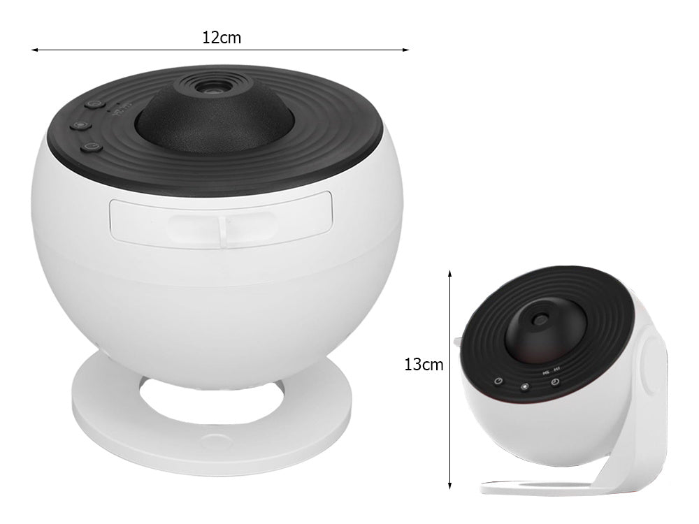 Forvandl ethvert rum til en stjernehimmel med denne smarte stjerneprojektor! Med 12 udskiftelige dias kan du skabe en magisk atmosfære fyldt med galakser, planeter og fascinerende kosmiske billeder. Perfekt til soveværelset, børneværelset eller stuen.