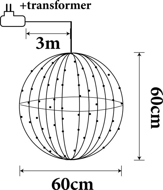 Skab en magisk julestemning både indenfor og udenfor med denne"Stor Lysbold". Denne smukke lysbold har en diameter på 60 cm og er pyntet med 400 individuelle LED-lys, der giver en festlig og varm atmosfære. Lysbolden er ideel til at hænge på din altan, over en gren i haven, på verandaen eller i entréen, hvor den byder dine gæster velkommen med hyggeligt lys. Med dens neutrale design og holdbare konstruktion er den perfekt som både julepynt og året-rundt-belysning.
