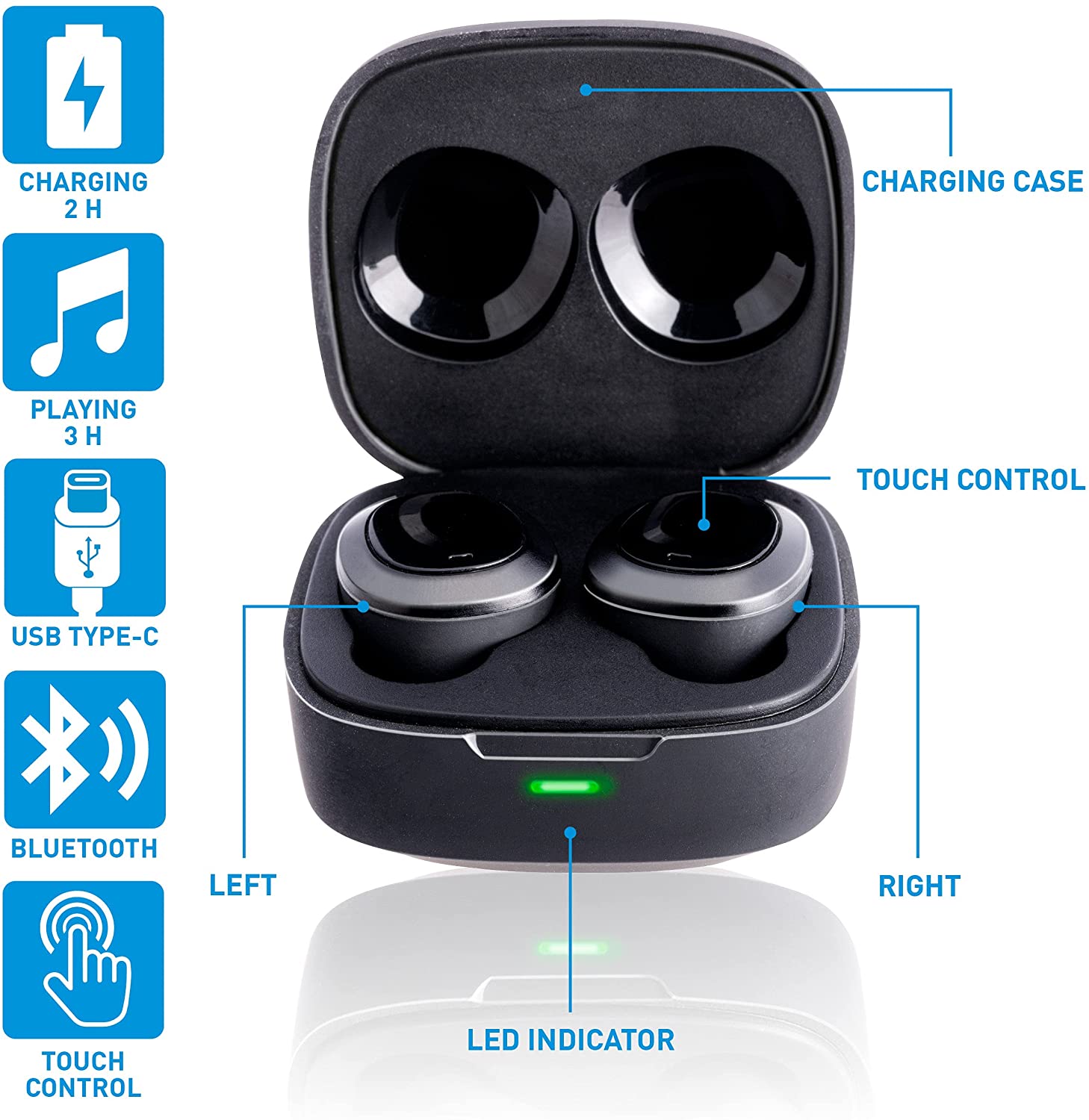 Oplev ultimativ frihed med Grundig's trådløse Bluetooth-høretelefoner, der giver dig mulighed for at nyde din yndlingsmusik helt uden kabler. Med True Wireless Stereo (TWS) teknologi og en praktisk opladningsetui, kan du tage musikken med dig overalt. Den indbyggede mikrofon gør det nemt at besvare opkald, mens du er på farten.