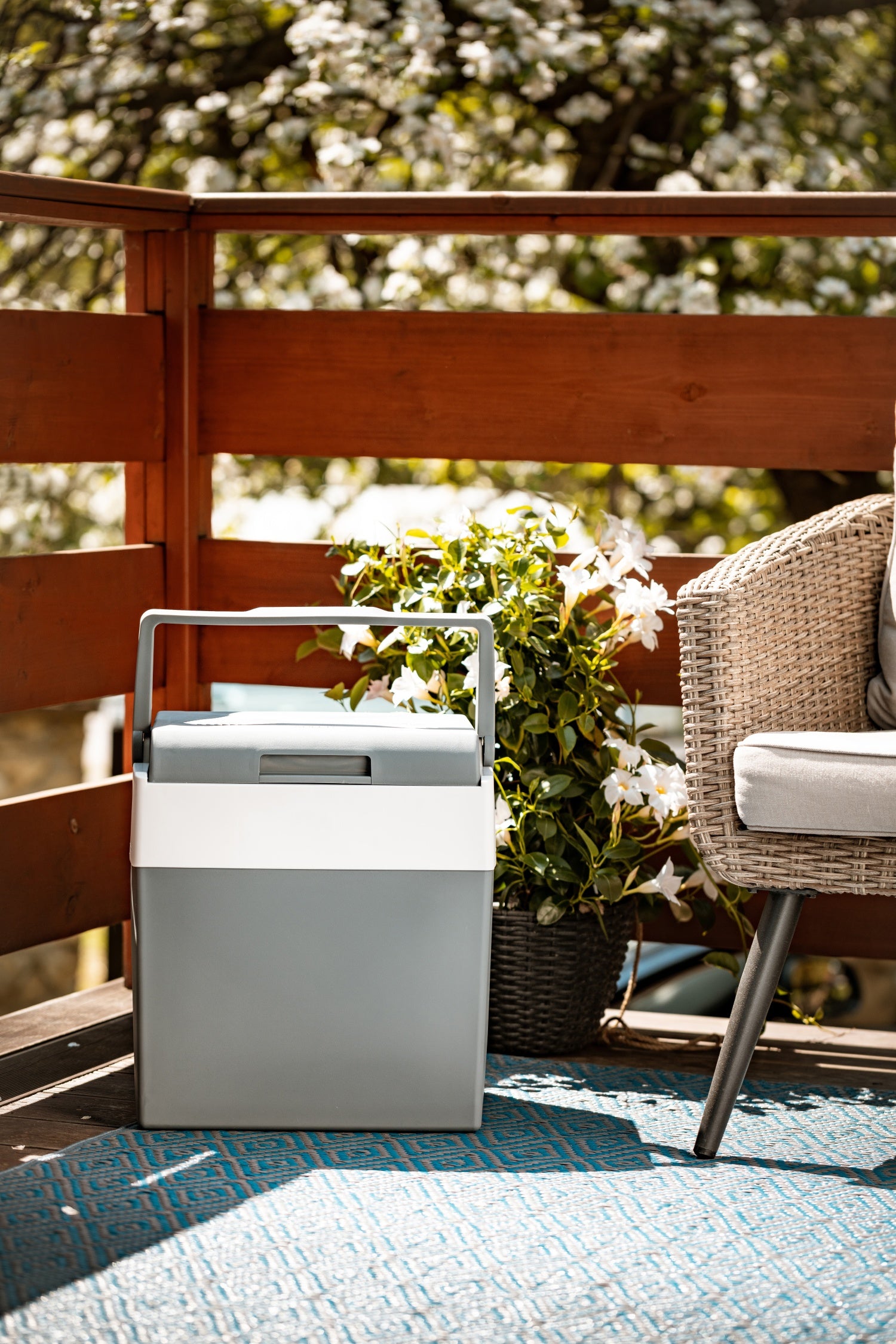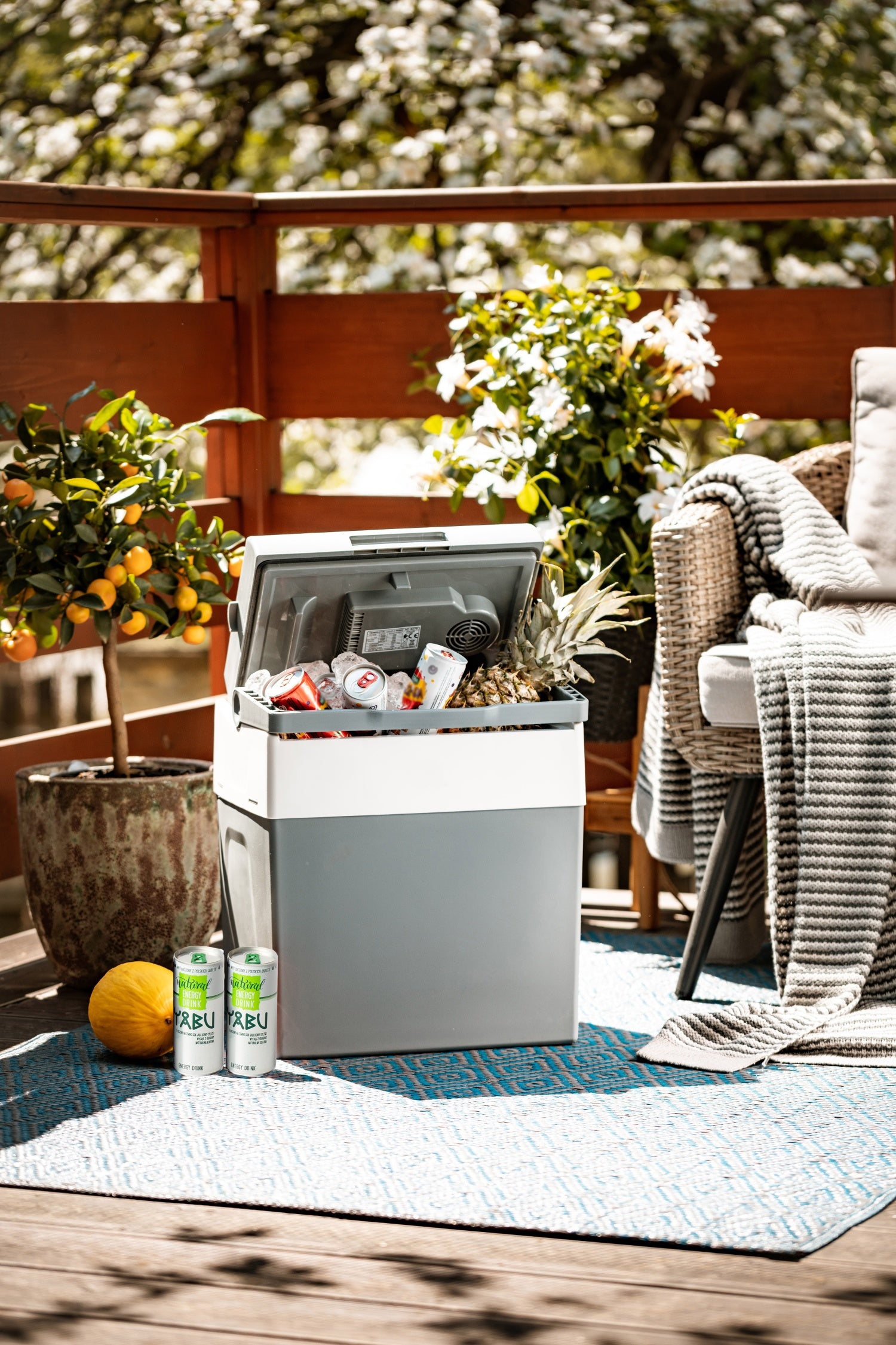 Perfekt til rejsende, campister og picnic-elskere – denne "Transportabel Køleboks 28L" sikrer, at dine drikkevarer og madvarer holder den rette temperatur, uanset hvor du er. Takket være den store kapacitet på 28 liter kan du nemt tage forsyninger med til hele familien. Køleboksen kan tilsluttes både bilen (12V) og almindelige stikkontakter (230V), hvilket gør den ideel til både bilferier og hjemmebrug.